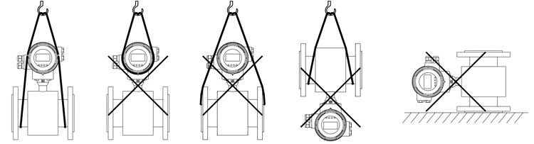 a.請勿通過一體轉換器外殼抬起流量計 |