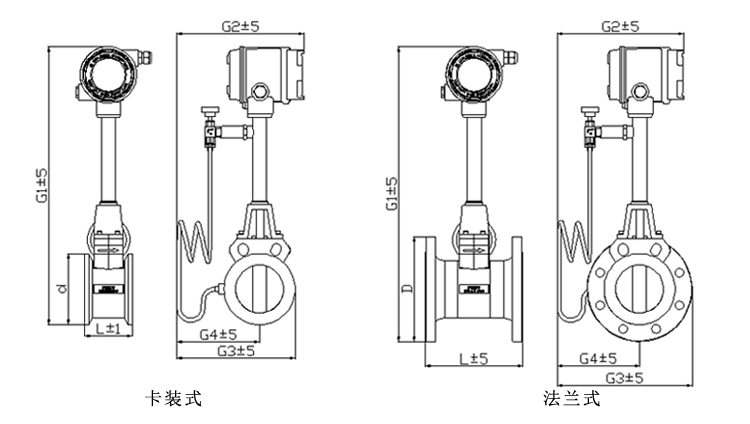 渦街流量計屬于對管道流速分布畸變、旋轉流和流動脈動等敏感的流量計,因此,對現場管道安裝條件應充分重視,遵照生產廠使用說明書的要求執行。 渦街流量計可安裝在室內或室外。如果安裝在地下井里,有水淹的可能,要選用潛水型傳感器。傳感器在管道上可以水平、垂直或傾斜安裝,但測量液體和氣體時為防止氣泡和液滴的干擾,安裝位置要注意。 |